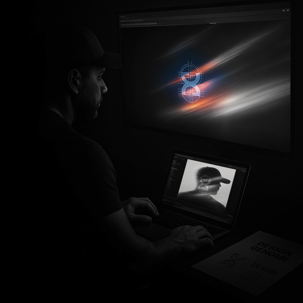 I bring the Design Genome into every brand, logo and motion piece I create. It’s the invisible system that connects structure and soul—from typography and color psychology to movement and sound. Each project becomes a living entity designed to grow with purpose and identity.